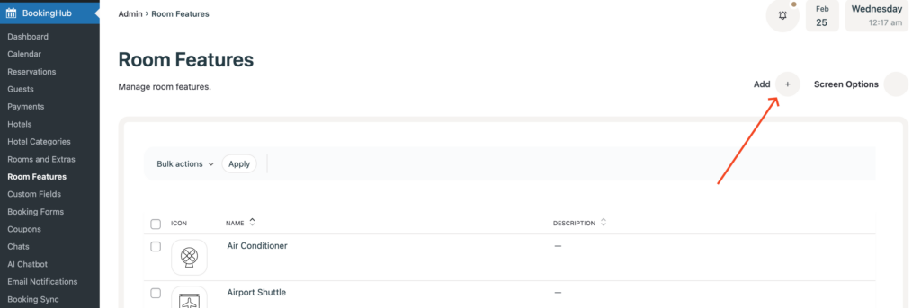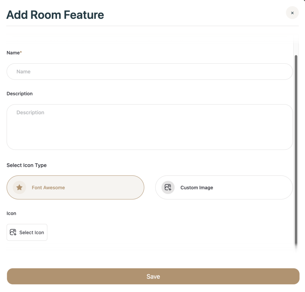 Room Features help describe or highlight room-specific qualities — like “Wi-Fi”, “AC”, or “Towels Included” — to better inform users during booking.