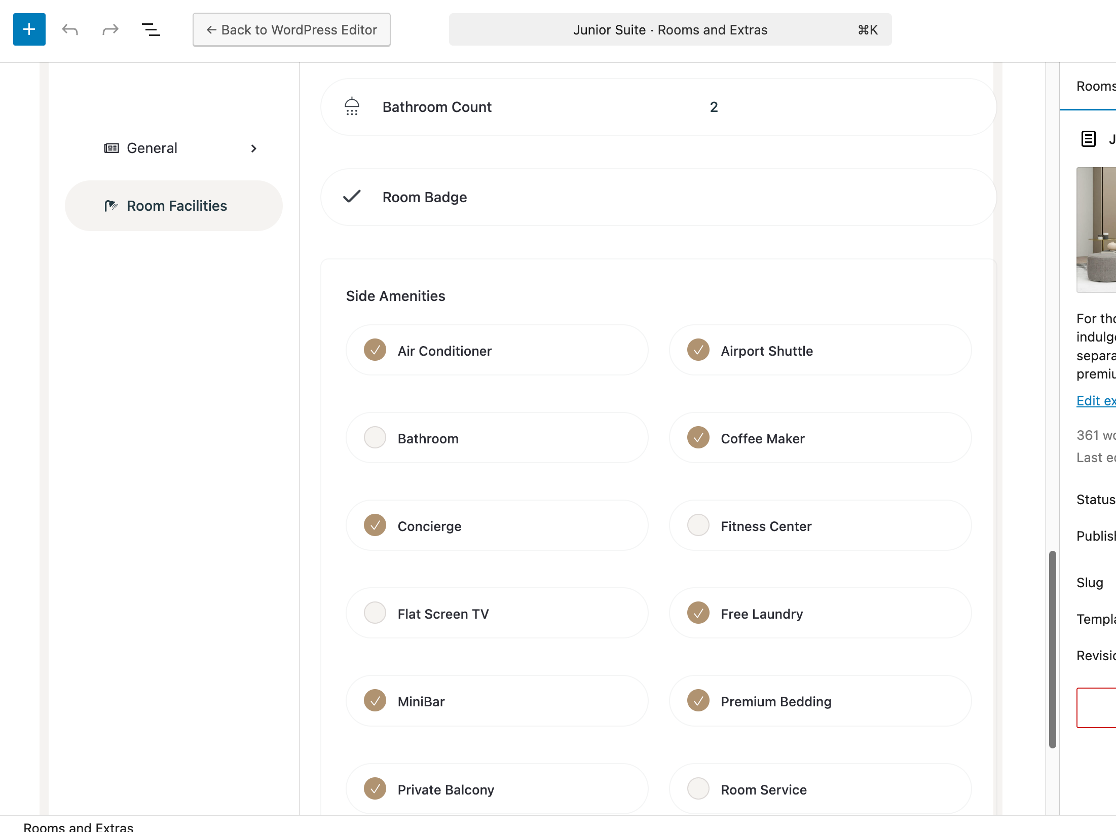 Adding features helps your users better understand the offerings and benefits of your hotel rooms.